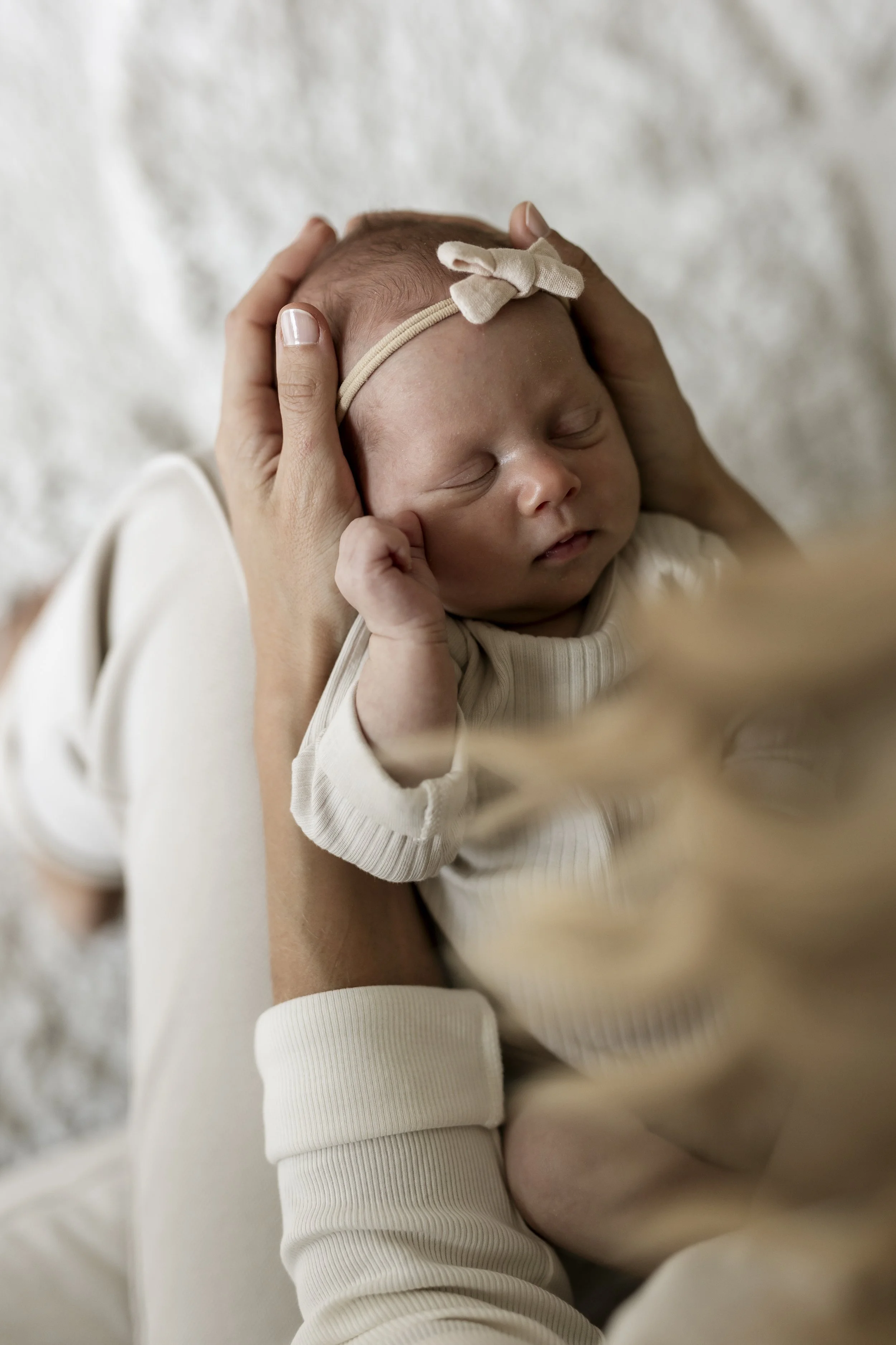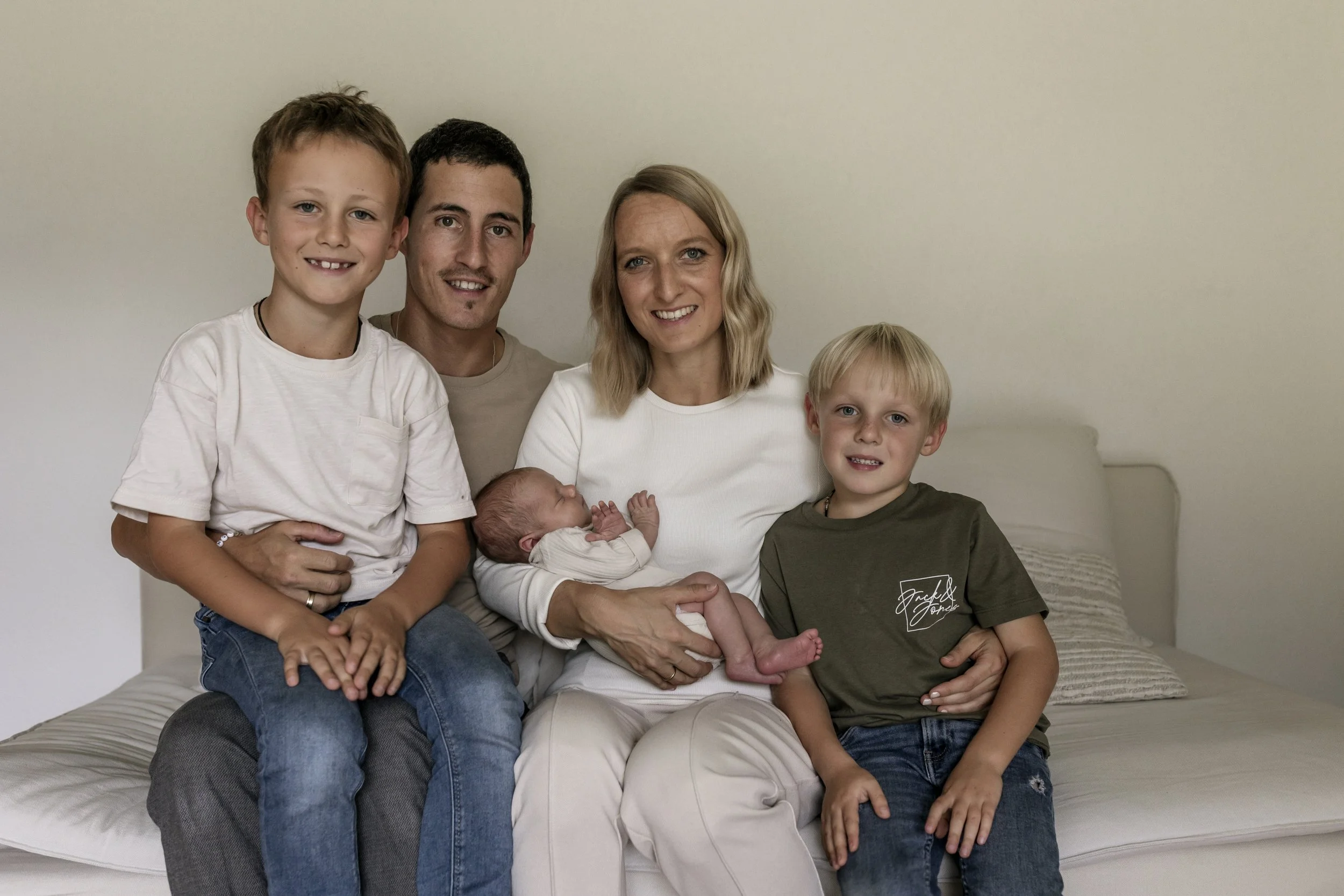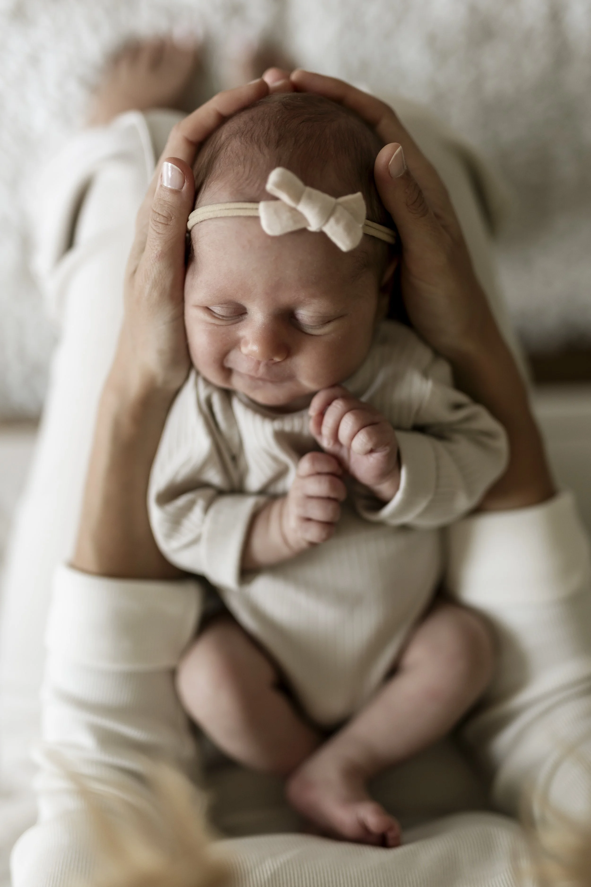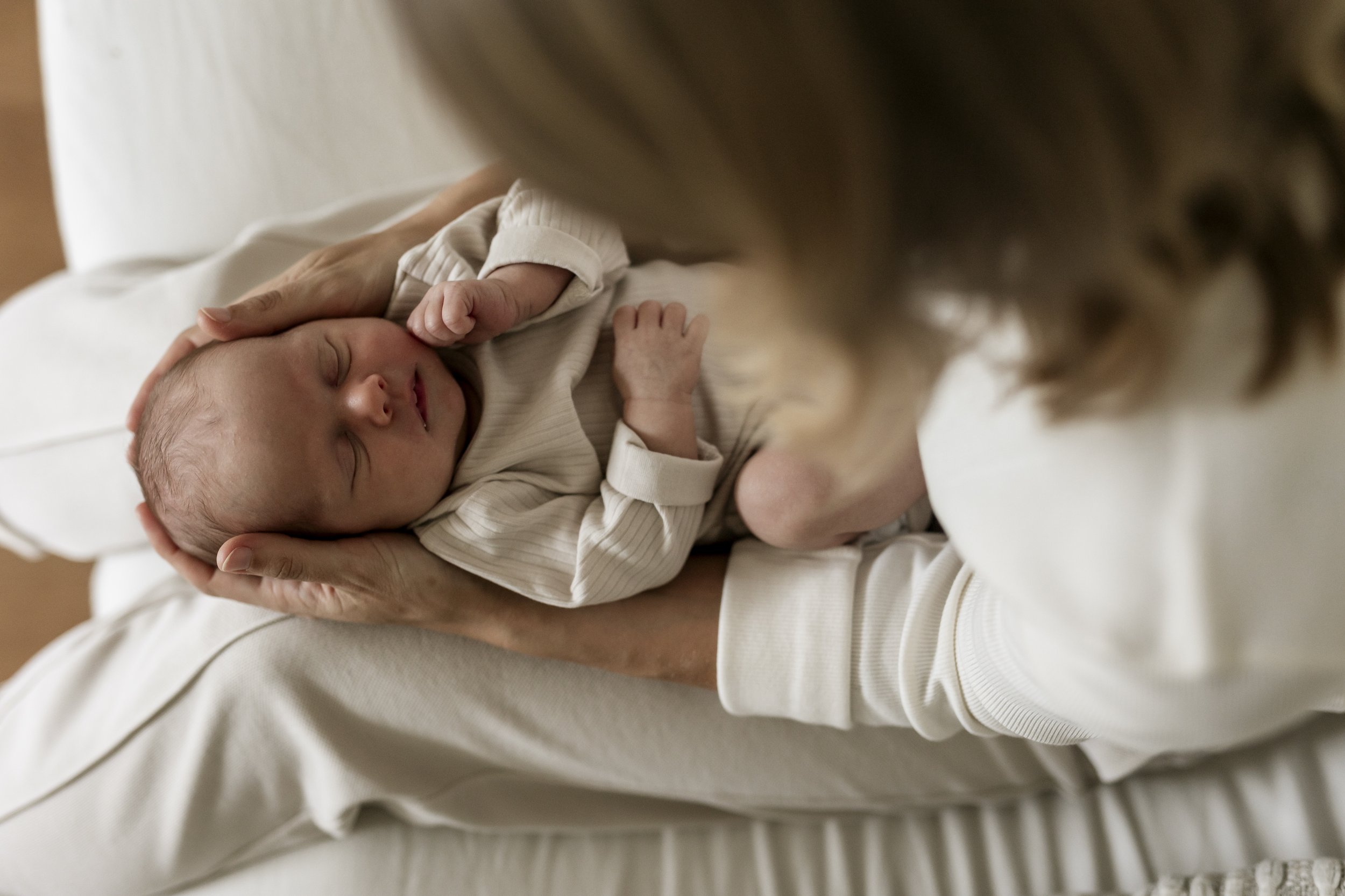 Beim Newbornshooting zu Hause, in der bekannten Atmosphäre des Kindes und der Eltern, wird bei natürlichem Licht das Baby sanft abglichtet.
